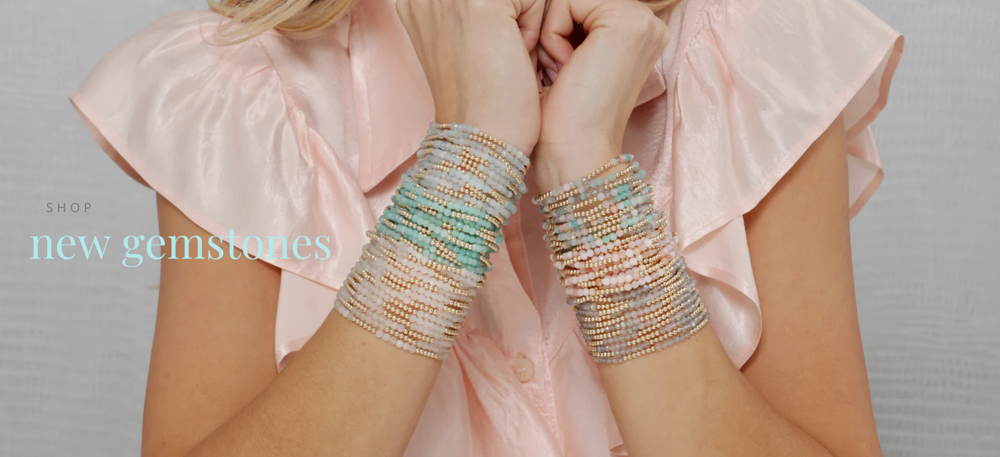 “Hope Unwritten” multi-color beads are a customer favorite, along with patterned bracelets like Grateful, Sincerity, and Joy. Gold + pearl combos are also timeless staples.