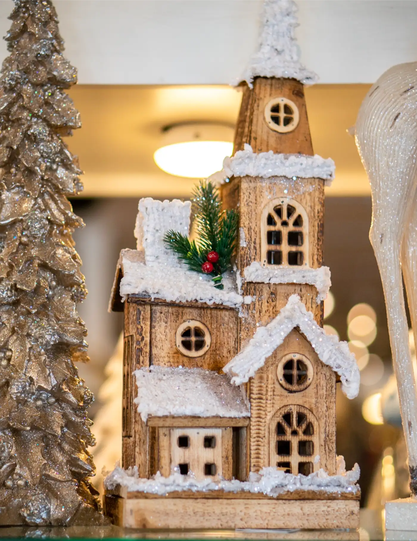Decorating for the holidays is easy and fun with accents from Fleet-Plummer. When you stroll through our Christmas displays, you'll find holiday pillows, gingerbread houses, and all sorts of elves, Santas, reindeer, snowmen, and nutcrackers. Above is just a small sample of our lighted decoration offerings.